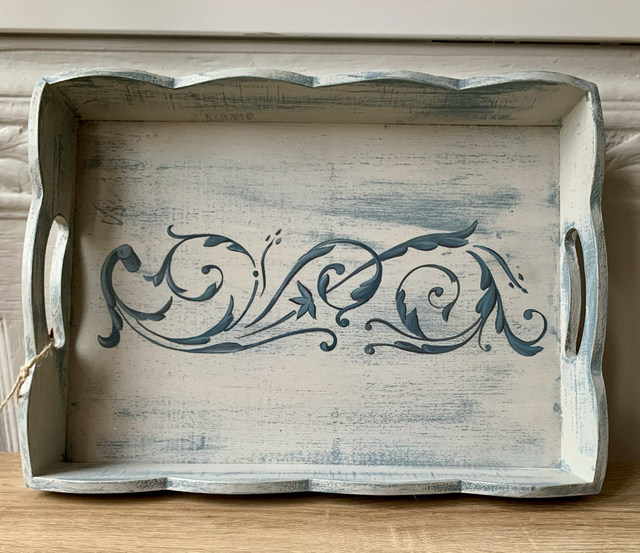 Plateau de service en bois peint et vernis