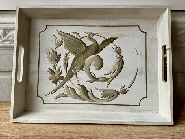 Plateau de service en bois peint et vernis
